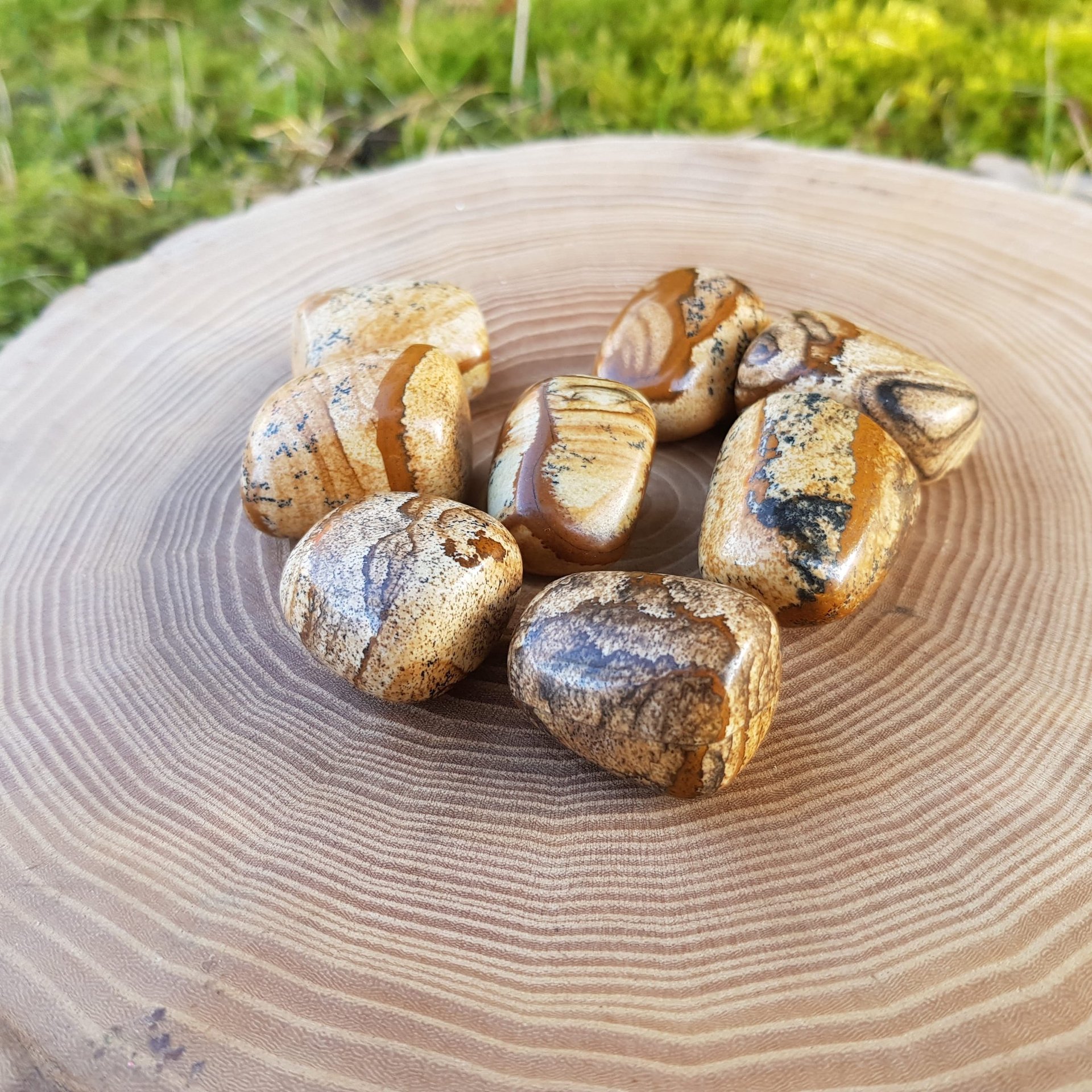 Paveikslinis jaspis yra harmonijos akmuo. Jis skatina kūrybiškumą, vizualizaciją ir sudaro galimybę suprasti fundamentalius dalykus, nežinomas civilizacijas. Padeda suderinti veiklumą, vystymąsi ir gilinimąsi į įvairias sritis. Dar jis yra žinomas kaip „pasaulinio sąmoningumo“ akmuo - skatina broliškus jausmus, draugystę ir sąmoningumą. Šis akmuo atpalaiduoja energiją, kuri skatina dvasinį bendrumą ir mokėjimą rasti optimaliausius sprendimus tarp žmonijos ir gamtos. Paveikslinis jaspis padeda surasti priežastis, susijusias su netvarka, esančia išorėje, išlaisvina iš baimių, širdgėlos, sužadina viltį ir tikėjimą.